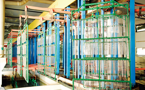 公司現(xiàn)有固定資產6000余萬元,員工300余人,現(xiàn)具有年產噴氣異型筘12萬米,劍桿筘32萬米,噴水筘5萬米,綜框20萬片,鋼片綜2億片,停經(jīng)片1.5億片, 織軸1.2萬套的生產能力。公司“越泉”商標被評為“中國馳名商標”。公司通過ISO9001 :2015國際質量體系認證,ISO14001:2015國際環(huán)境管理體系認證,ISO45001:2018國際職業(yè)健康安全管理體系認證,噴氣織機用鋼筘和織機用鋁合金綜框獲得“浙江制造”品牌認證,公司擁有自營進出口權,產品暢銷全國并遠銷印度、巴基斯坦、土耳其、埃及、哥倫比亞、意大利等國家和地區(qū)。